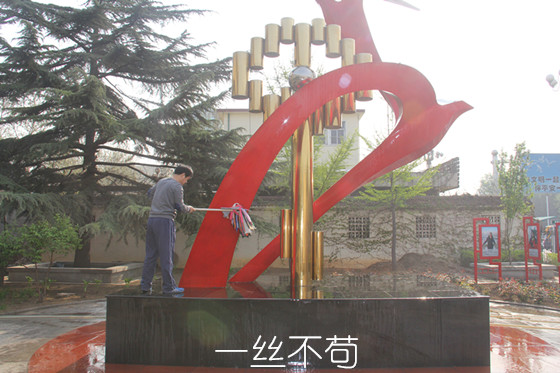只見大家熱情高漲,有的拿著抹布擦洗宣傳欄,有的拎著水桶沖刷臺階,有的高舉水管清洗圍欄,有的拿著掃帚清掃地面。歷時兩個小時,大家的辛苦勞動讓我們的校園美麗如新,埋頭苦干之后,我們的臉上有藏不住的快樂,是共同努力的收獲。