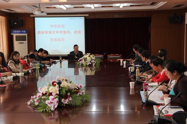 2014年4月23日,西安市育才中學(xué)一行三十多人在其校領(lǐng)導(dǎo)的帶領(lǐng)下來(lái)校參觀交流。首先由馮書記介紹了學(xué)校的總體情況,然后參觀了校園和體育館游泳館。
