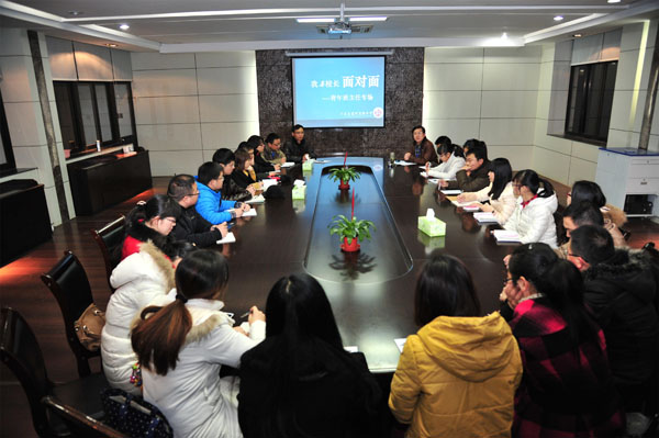 為培養(yǎng)一支敬業(yè)愛崗、盡職盡責的青年班主任隊伍,提高青年班主任教師素質,更加合理有效的管理班級事務,以及應對班級日常管理中出現(xiàn)的棘手問題,以適應全面素質教育的需要,政教處于2013年12月17日晚七點在景行樓二樓會議室組織召開了青年班主任工作培訓會,參加此次會議的人員有高一、二、三年級35周歲以下的年輕班主任。此次培訓會也是“我與校長面對面”系列活動之一,會上季仲平校長向大家分享了多年來的班主任工作經驗,對青年班主任提出了希望。