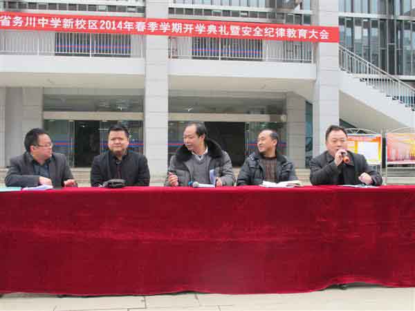 會(huì)議由學(xué)校副校長(zhǎng)覃剛同志主持,覃智鋒副校長(zhǎng)做新學(xué)期的工作報(bào)告,他風(fēng)趣幽默的語言,生動(dòng)而具體的例子向大家講述著安全方面的工作,接著學(xué)校黨委書記副校長(zhǎng)申永強(qiáng)同志宣布2013—2014年秋季學(xué)期優(yōu)秀學(xué)生和優(yōu)秀班團(tuán)干學(xué)生名單,并予以表彰。之后由學(xué)校校長(zhǎng)田維貴同志代表學(xué)校向全校師生做了熱情洋溢的講話,他說:“步入新學(xué)期,展現(xiàn)新面貌,今年是馬年,希望每一位師生具有龍馬精神,遇到困難永不倒?!辈?duì)全校師生提出一些要求和希望?!皩W(xué)高為師,身正為范”,教師在學(xué)生面前就要起到良好的模范帶頭作用,時(shí)時(shí)刻刻要以教師身份樹立榜樣。樹立遠(yuǎn)大的教育理想,鞠躬盡瘁,樹立終生從教思想,樹立終生學(xué)習(xí)的理念,樹立創(chuàng)新意識(shí)的理念,樹立嚴(yán)謹(jǐn)治學(xué)的理想,樹立教學(xué)團(tuán)隊(duì)精神,樹立教學(xué)科研的意識(shí)......
