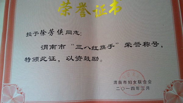 渭南中學(xué)徐芳俠老師被市婦聯(lián)授予渭南市“三八紅旗手”榮譽(yù)稱號(hào)。