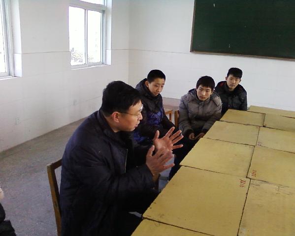 2014年3月13日上午樊川中學朱愛國校長到蹲點班級九(2)班召開學生代表座談會。朱校長親臨基層,與同學促膝談心,了解學情,指導(dǎo)學法,寄予厚望,關(guān)愛學生的成長,學生深受鼓舞,信心倍增,立志再創(chuàng)學校中考新的輝煌。
