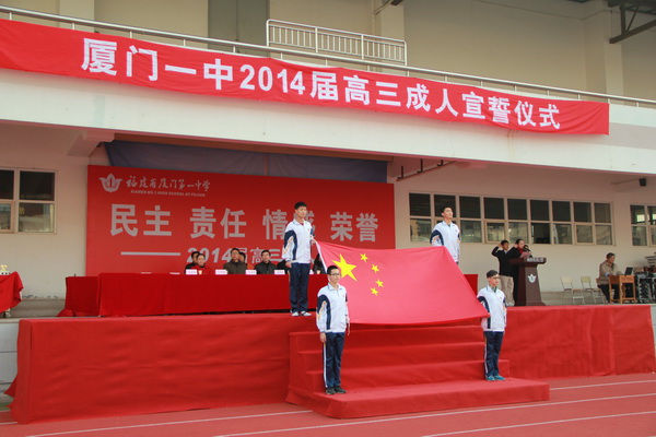 2013年12月28日,我校為全體高三學生舉行了主題為“民主、責任、情感、榮譽”的成人宣誓儀式。