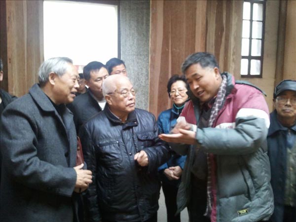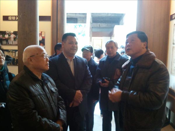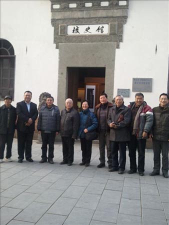6、原全國政協(xié)常委、原安徽省省委書記黃璜一行與休寧中學(xué)領(lǐng)導(dǎo)在校史館前合影留念