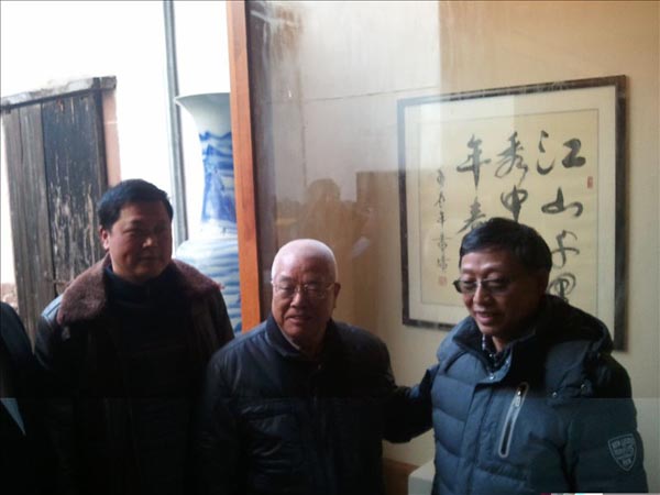 4、原全國政協(xié)常委、原安徽省省委書記黃璜,休寧中學(xué)校長李順寶,休寧中學(xué)黨總支書記宋新田在黃璜書記為休中百年校慶題詞前合影