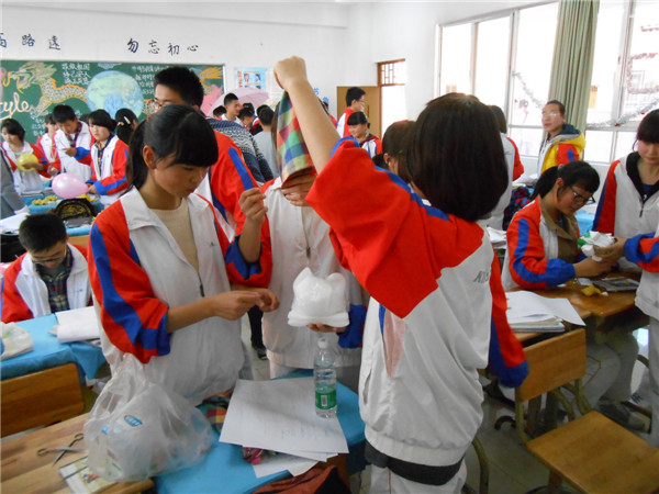 在期末考前夕做一個物理科技設(shè)計,成績一向優(yōu)秀的團支書陳禧禪同學(xué)覺得是非常好的緩解壓力方式,可以考驗大家能否靈活運用知識。為了使自己小組的雞蛋從五樓自由落體不摔碎,全班同學(xué)都絞盡腦汁,所有人都盡其所能提出自己的想法,事先嘗試了許多種方案。