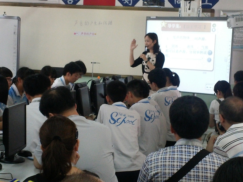 劉玉梅老師參賽的是八年級物理《聲音的產(chǎn)生和傳播》。一聲嬰兒呱呱墜地的聲音非常巧妙地引出了課題。一開始,學(xué)生有些拘謹(jǐn),在劉老師的鼓勵(lì)和啟發(fā)下,探究性的學(xué)習(xí)活動有效開展起來。課堂上不時(shí)傳來同學(xué)們探究成功的陣陣掌聲。但是在第一環(huán)節(jié)學(xué)生交流成果時(shí),電子白板出現(xiàn)了故障,現(xiàn)場所有的人都愣住了,此時(shí)劉老師并沒有讓課堂停下來,而是從容巧妙、恰到好處的應(yīng)對。在本節(jié)課中類似的情況共出現(xiàn)了三次,劉老師運(yùn)用扎實(shí)的基本功及豐富的教學(xué)經(jīng)驗(yàn)化解了問題,使課堂教學(xué)得以順利進(jìn)行。讓大家體會到新媒體技術(shù)與教學(xué)的深度融合,同學(xué)們在劉老師生動活潑的教學(xué)中學(xué)習(xí)到了物理學(xué)的思想和方法。