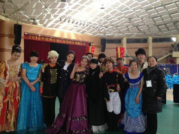 第二屆杭州市高中學(xué)生英語(yǔ)戲劇大賽于2013年12月25日在綠城體育館舉行。本次活動(dòng)的主題是“戲劇之夢(mèng),點(diǎn)亮人生”(Dramatized Dreams Enlightened Lives)。來(lái)自杭城的16所中學(xué)派出代表隊(duì)參加了比賽。最終我校張利萍老師指導(dǎo)的“窈窕淑女”榮獲一等獎(jiǎng),實(shí)現(xiàn)了我校新的超越! “窈窕淑女”表演團(tuán)隊(duì)主要來(lái)自于張利萍老師的選修課“英美文學(xué)與戲劇表演”學(xué)員。這是一個(gè)團(tuán)結(jié)協(xié)作的團(tuán)隊(duì),讓我們記住參與表演的13位同學(xué)的名字:姚含紫、朱瑀瀟、張嘉晨、陳璇、張柏銘、馬俊杰、楊方璇、陸雋、馮瀾、馮瀾、姚虹姣、孫施妍、李詩(shī)悅,另外還要感謝劇務(wù)沈奕凡,服裝孟雨虹,以及選修課的其他同學(xué)的支持。更要感謝參與舞臺(tái)化妝和表演指導(dǎo)的黃丹和趙春燕老師的大力支持!