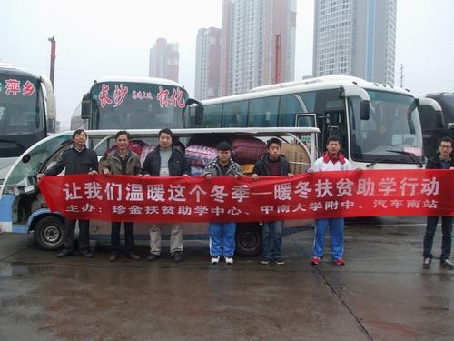 特別是中南大學(xué)后勤集團李潤山總裁及陳主任和長沙市汽車南站領(lǐng)導(dǎo)李政祥獲悉我們的愛心活動受到長途運輸制約的情況后,克服年底車隊業(yè)務(wù)繁忙,春運車輛緊張的困難,主動免費幫助我們發(fā)運捐贈衣物。