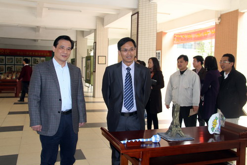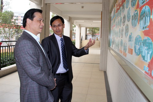 2014年1月2日,新年開工首日,中山市教育局局長李長春蒞臨我校調(diào)研學校管理、教育教學、基礎設施建設等工作。市教育局辦公室主任唐杰偉、教研室主任黃世勇、基礎教育科科長鄧新山,我校王錫文校長和全體領導班子成員陪同參觀和座談。