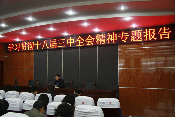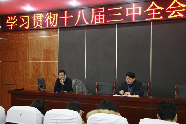 最后王柏根副書記作總結(jié)點評,他認為陳波教授的報告“全面、通俗、風趣”,并號召全體教工以此為契機掀起新的一輪學(xué)習貫徹十八屆三中全會精神的熱潮。最后他布置了我校黨委關(guān)于學(xué)習宣傳貫徹黨的十八屆三中全會精神的“七個一”學(xué)習活動安排,即:擬定一個學(xué)習計劃;通讀一遍《決定》原文;撰寫一批體會文章;組織一次專家輔導(dǎo);開展一番專題調(diào)研;提出一些落實舉措;形成一個工作思路。