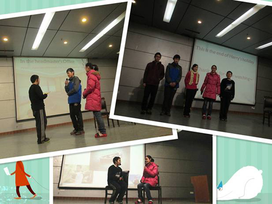 每一個表演者都流利地表演了自己的角色,而這一個個因為書上的練習題而險些失去趣味的故事也因為同學們的精彩的演繹而變得更為絢爛多彩。也許會有人疑惑,是什么讓杭外人與眾不同,我想,也許我會回答,是一個個精彩鏡頭之外的汗水,是一個詞一個詞仔細推敲的堅持,是一個個道具與燈光的精心準備,而這一切又恰好天衣無縫地結合。所以,一般地,在活動面前能表現(xiàn)出這樣出色的素質與能力的同學,我們把他們稱為,杭外人。