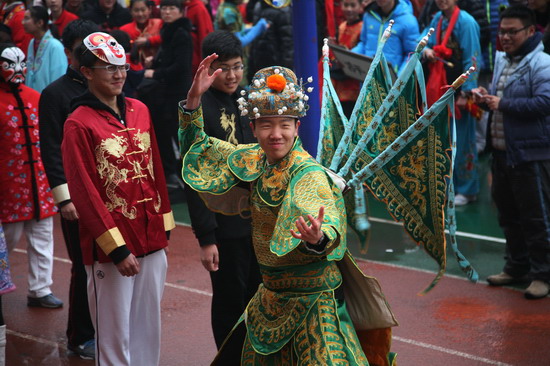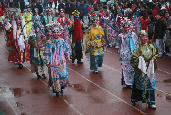2012年12月14日,北京,瑞雪紛飛,銀裝素裹。實驗,張燈結彩,喜氣洋洋。第五屆中華傳統(tǒng)文化節(jié)在鑼鼓聲中拉開帷幕。以蔡曉東校長和程鳳春書記為首的校長團全套彩妝作出表率,與師生同樂,蘇海燕老師帶領的初二年級班主任更以戲曲里的“才子佳人”為主題為師生帶來視覺盛宴。參加本屆文化節(jié)開幕式的嘉賓有全國政協(xié)常委、中國京劇院原院長、國家一級編導吳江先生以及中國文學藝術基金會,中國非物質文化校園傳承基金執(zhí)行理事長黃儉先生。還有給予學校大力支持的武警總部直屬支隊的翟康太副政委和張占周主任。