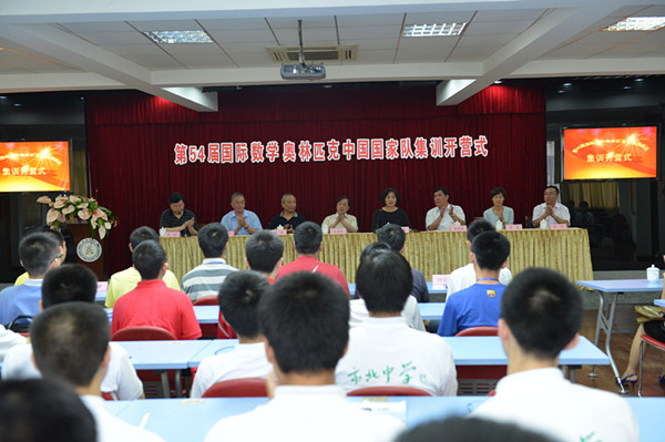 開營式上,我校校長陳軍致歡迎辭,對各位同學(xué)、領(lǐng)導(dǎo)和嘉賓的到來表示熱烈的歡迎,并對大家的支持和關(guān)心表示衷心的感謝。隨后,熊斌教授介紹了第54屆國際數(shù)學(xué)奧林匹克競賽培訓(xùn)工作情況:國家隊(duì)隊(duì)員是經(jīng)過去年十月的全國高中數(shù)學(xué)聯(lián)賽,選拔出300多人參加奧數(shù)冬令營,再選拔60多人進(jìn)入集訓(xùn)隊(duì),最終選拔出6人組成國家隊(duì),將于7月出征哥倫比亞。接著,國家隊(duì)隊(duì)員、上海市格致中學(xué)顧超同學(xué)代表六名正式隊(duì)員和19名旁聽生發(fā)言,表示了為祖國爭光的決心。