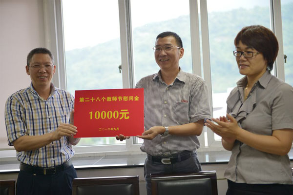 2012年9月6日下午,在第二十八個(gè)教師節(jié)來(lái)臨之際,瑞安市委陳建民書(shū)記在副市長(zhǎng)鄭海潔、教育局局長(zhǎng)王育倫等領(lǐng)導(dǎo)的陪同下來(lái)到學(xué)校,代表瑞安市委市政府向?qū)W校贈(zèng)送慰問(wèn)金10000元,并向辛勤工作在教育戰(zhàn)線(xiàn)上的瑞中全體教職工致以節(jié)日的問(wèn)候!