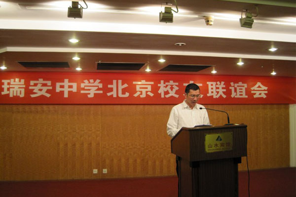 5月26日上午,瑞安中學(xué)北京校友會(huì)2013年聯(lián)誼會(huì)在西單山水賓館多功能廳隆重召開,瑞安市副市長鄭海潔、瑞安市政協(xié)副主席、瑞安中學(xué)校長陳良明和工作在首都各條戰(zhàn)線上的140多位校友及部分瑞籍人士參加了會(huì)議。