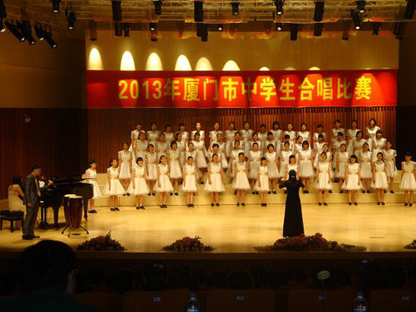 6月9日下午,2013年廈門市中學(xué)生合唱比賽在中央音樂學(xué)院五緣灣鋼琴學(xué)校鼓浪嶼音樂廳舉行,來自全市各中學(xué)的25支代表隊(duì)參加了本次比賽。這25支隊(duì)伍都是各區(qū)經(jīng)過比賽選拔之后推薦出來的佼佼者。我校合唱隊(duì)力克群雄,奪得金獎(jiǎng)(名列第二)。這是我校合唱隊(duì)在繼奪得思明區(qū)中小學(xué)生合唱比賽第一名之后再次取得好成績,也是我校合唱比賽所取得的最好成績。