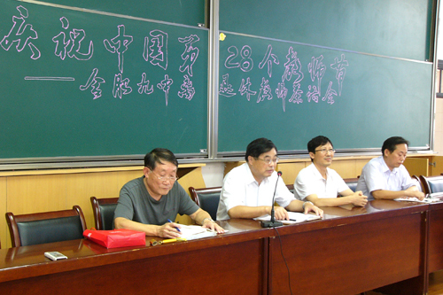 9月10日下午,值此第28個教師節(jié)之際,合肥九中在一樓大階梯教室召開了離退休老同志慶祝教師節(jié)茶話會。學校黨總支書記、校長陳明華、副校長周祖保、副校長毛曉斌和離退協(xié)主任陳益勝出席了會議。