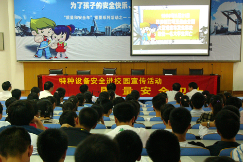 會(huì)上,安徽省質(zhì)量技術(shù)監(jiān)督局副局長高宗宏就開展此項(xiàng)活動(dòng)的重要性、活動(dòng)主題發(fā)表了熱情洋溢的講話,講解了什么是特種設(shè)備,列舉了許多因不當(dāng)使用特種設(shè)備而導(dǎo)致安全事故的例子,澄清了學(xué)生對特種設(shè)備的模糊認(rèn)識,引起了與會(huì)學(xué)生對正確使用特種設(shè)備的高度關(guān)注。合肥九中陳明華校長代表合肥九中就開展好此項(xiàng)安全活動(dòng)提了三點(diǎn)要求,一是高度關(guān)注學(xué)生的成長安全,二是要靈活多樣,不斷豐富正確使用特種設(shè)備學(xué)習(xí)形式, 三是全校立即行動(dòng),積極開展好此項(xiàng)宣傳活動(dòng)。
