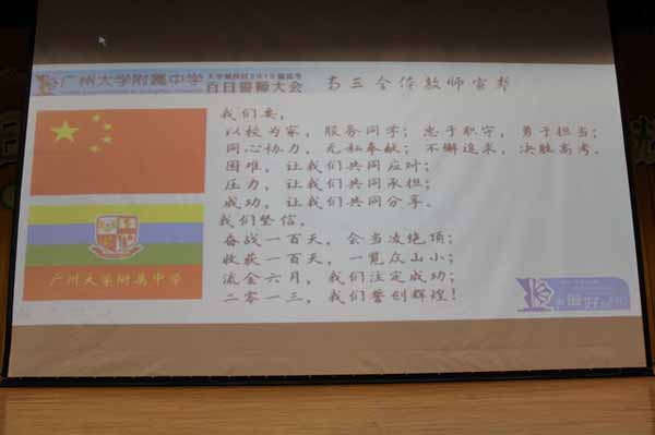 隨后,王級(jí)長(zhǎng)帶領(lǐng)高三級(jí)所有任課老師面對(duì)國(guó)旗與校旗莊嚴(yán)宣誓,老師們用雄渾高亢的聲音整齊地表達(dá)了他們對(duì)學(xué)生的熱心、對(duì)工作的信心以及對(duì)為校爭(zhēng)光的決心。