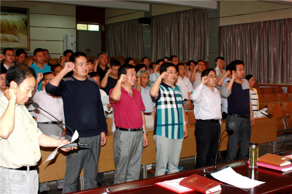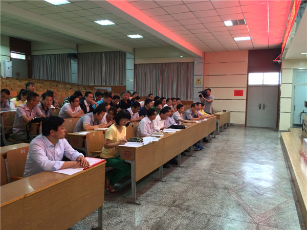 黨總支副書記劉天眷主持會議,黨總支全體委員、全體黨員及副科級以上干部參加了報告會。石峰書記帶領全體黨員重溫入黨誓詞并在黨旗下莊嚴宣誓,劉天眷副書記宣讀優(yōu)秀共產(chǎn)黨員表彰獎勵決定,脫永軍等8名優(yōu)秀黨員獲獎。竇興文校長以“全面深化‘三嚴三實’專題教育,徹底改進領導作風和師德作風”為主題作了黨課輔導報告,他結合學校實際,列舉了領導班子、領導干部、黨員干部、教職工及學校工作中存在的不嚴不實的各類問題及表現(xiàn),分析了問題存在的深層次根源,提出了改進領導作風和師德師風的具體要求和措施,為把我?!叭龂廊龑崱睂n}教育不斷引向深入指明了方向,為下一步開展好專題學習研討做好了準備。