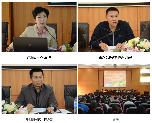 市教育局紀委周書記對群眾路線教育實踐活動內(nèi)涵外延深入淺出做出闡釋,一針見血指出蒙自教育系統(tǒng)存在的突出問題。要求學(xué)校加強正面教育,把握此項活動的精神實質(zhì),堅持開門搞活動,讓廣大師生和家長參與監(jiān)督和評判;強化規(guī)定動作,突出教育系統(tǒng)的特點;堅持領(lǐng)導(dǎo)帶頭,發(fā)揮領(lǐng)導(dǎo)干部的示范作用;堅持兩手抓,兩手都要硬,抓“四風(fēng)”促進教育教學(xué)質(zhì)量的提高,統(tǒng)籌兼顧,合理安排,克服兩極傾向。