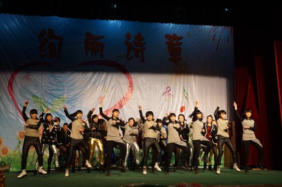 百花齊放的社團(tuán)文化是遵義四中一道靚麗的風(fēng)景線,吸納了大多數(shù)的同學(xué)走近她,并在其中不斷的發(fā)展自己,提升自己的文化素養(yǎng)和綜合能力。2012年11月23日晚,遵義四中大禮堂燈火通明、座無虛席,由共青團(tuán)遵義四中委員會(huì)主辦,學(xué)生會(huì)、社團(tuán)聯(lián)合會(huì)承辦的遵義四中第二屆社團(tuán)聯(lián)合匯演在這里隆重上演,這是一場(chǎng)屬于全校14個(gè)社團(tuán)及學(xué)生會(huì)的聯(lián)歡、也是一個(gè)屬于學(xué)生自己創(chuàng)造的表演舞臺(tái),更是一次全權(quán)由學(xué)生負(fù)責(zé)舉辦的繽紛社團(tuán)夜。學(xué)校校長(zhǎng)杜方榮、黨總支書記任炳勝、副校長(zhǎng)樊厚義、蔣明燦、肖凌,共青團(tuán)遵義市委副書記、遵義市青年聯(lián)合會(huì)主席唐永智、共青團(tuán)紅花崗區(qū)老城委員會(huì)書記馮喆、共青團(tuán)遵義市航天高級(jí)中學(xué)委員會(huì)社團(tuán)負(fù)責(zé)人李現(xiàn)梅及學(xué)生干部、共青團(tuán)遵義市第五中學(xué)委員會(huì)書記蓋詢及學(xué)生干部、共青團(tuán)遵義市第十一中學(xué)委員會(huì)曹玉及學(xué)生干部同遵義四中的老師、學(xué)生們等近1600人一道欣賞了此次社團(tuán)盛宴,享受了這次繽紛社團(tuán)夜。