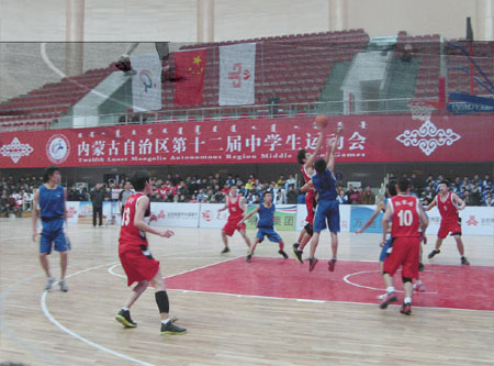 2011年內(nèi)蒙古自治區(qū)第十二屆中學(xué)生運(yùn)動會籃球賽于3月12日至17日在鄂爾多斯市達(dá)拉特旗體育館舉行,來自呼市、包頭、烏海、鄂爾多斯、巴彥淖爾、通遼、赤峰、呼倫貝爾、興安盟、烏蘭察布市和錫林郭勒盟等11個盟市的19支男、女籃球隊參加了比賽。包三十三中男籃代表包頭市參加了比賽,并以全勝的成績榮獲冠軍,為包頭市爭得了榮譽(yù)。這是自2007年以來的五年中,三十三中男籃第四次榮獲自治區(qū)中學(xué)生籃球賽冠軍(08年獲第三名),第十次榮獲內(nèi)蒙古自治區(qū)籃球賽冠軍。