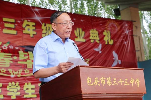 2015年6月3日上午,包三十三中2015屆60多位老師為他們800多個孩子送上了這三年最后一份禮物——隆重卻又別具一格的畢業(yè)典禮。這一天,會場布置清新而溫暖:積極勵志、鼓舞人心的大紅橫聯(lián)豎幅;象征邁入成功、步入人生新階段的金色拱門;高三年級18個班三年快樂點滴的“照片墻”都使原本傷感的畢業(yè)典禮滿帶著祝福與希望。