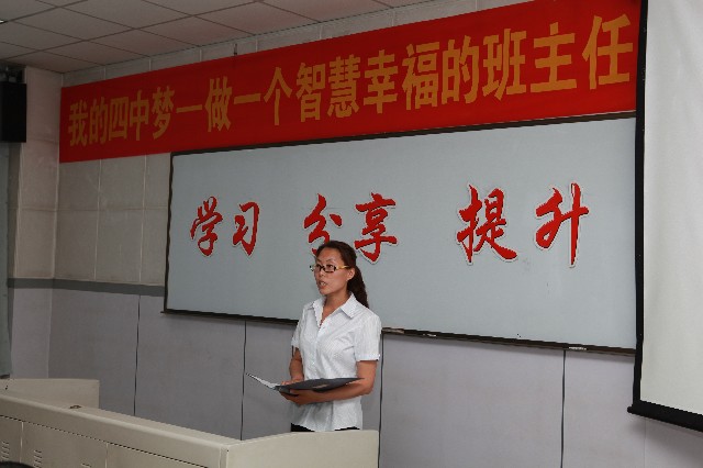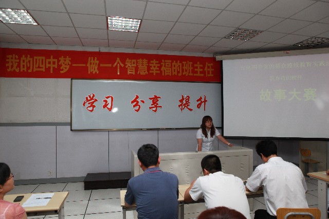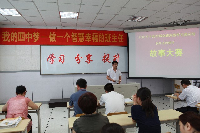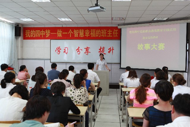2014年5月29日在我校四樓多功能廳舉行了題為“我的四中夢——做一個智慧幸福的班主任”的班主任故事大賽。參加會議的領(lǐng)導(dǎo)有范校、王書記、田校、鄭校、張主任、呂主任、魏書記、武主任、裴主任以及除畢業(yè)班以外的全體班主任參加。