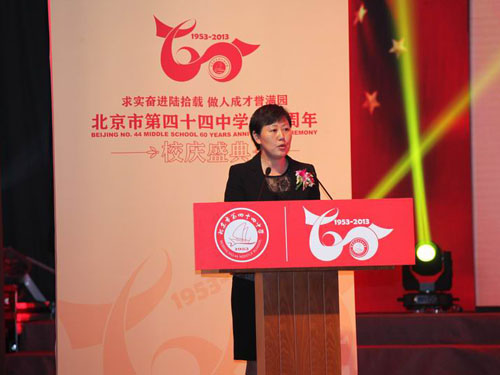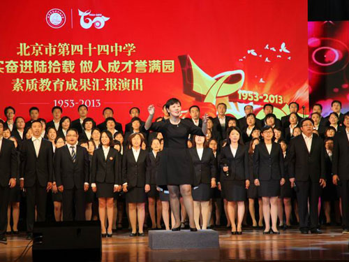 2013年9月30日,北京市第四十四中學(xué)全體師生與共建單位、友好學(xué)校、兄弟學(xué)校同仁、四十四中歷任校長(zhǎng)、書記、部分離退休教師及老校友代表一起,齊聚紅塔禮堂,舉行了隆重的“求實(shí)奮進(jìn)六十載,做人成才譽(yù)滿園”素質(zhì)教育成果展示活動(dòng)。