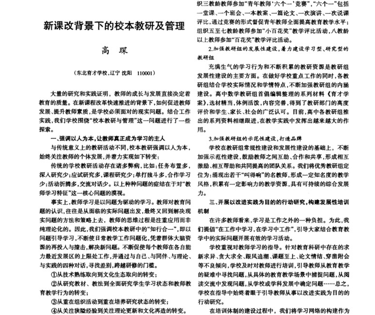 大量的研究和實踐證明,教師的成長與發(fā)展直接決定著教育的質(zhì)量.在新課程改革快速推進(jìn)的背景下,如何促進(jìn)教師發(fā)展、提升教師素質(zhì),是學(xué)校必須面對的現(xiàn)實問題.結(jié)合工作實踐,我們學(xué)校圍繞"校本教研與管理"這一問題進(jìn)行了一些探索。
