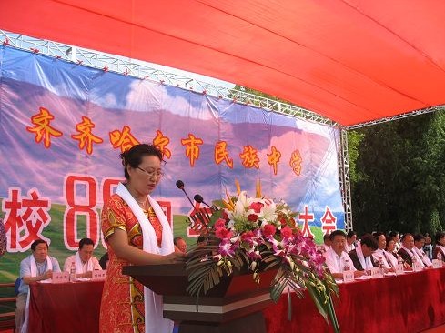 金風(fēng)送爽慶節(jié)日,嫩水揚(yáng)波迎嘉賓。今天,我們各民族同胞歡聚在校園,隆重慶祝齊齊哈爾市民族中學(xué)建校八十周年。這是齊齊哈爾市民族中學(xué)全體師生和新老校友期盼已久的盛大節(jié)日。在這歡樂(lè)的時(shí)刻,我謹(jǐn)代表民族中學(xué)全體師生, 向前來(lái)參加校慶的,并一直關(guān)懷、支持和幫助學(xué)校發(fā)展進(jìn)步的全國(guó)民族中學(xué)協(xié)會(huì)的領(lǐng)導(dǎo)、省教育廳的領(lǐng)導(dǎo)、省民委的領(lǐng)導(dǎo)和齊齊哈爾市委、市人大、市政府、市政協(xié)以及市教育局、市民宗局的各位領(lǐng)導(dǎo),向長(zhǎng)期關(guān)注民族教育事業(yè),并對(duì)民族中學(xué)發(fā)展做出貢獻(xiàn)的社會(huì)各界來(lái)賓,向曾經(jīng)在民族中學(xué)這塊熱土上辛勤耕耘的老領(lǐng)導(dǎo)、老教師,向心系母校、支持民族中學(xué)發(fā)展的歷屆校友,表示熱烈的歡迎、誠(chéng)摯的感謝和崇高的敬意!同時(shí),我以個(gè)人的名義,向全校師生員工致以親切的節(jié)日的問(wèn)候!