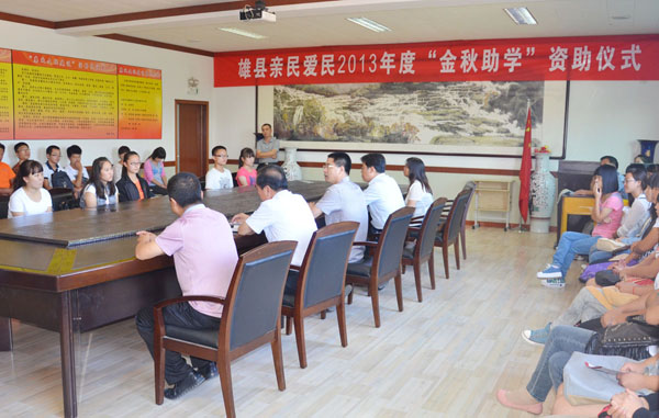 8月30日,雄縣2013年“金秋助學(xué)”貧困生資助儀式在雄縣中學(xué)舉行??h委辦常務(wù)副主任王勝、縣教育局長趙勇鴻、縣親民辦副主任王峰、雄中校長高景奇出席,雄縣中學(xué)受資助的84名被本科院校錄取的學(xué)生參加了會議。