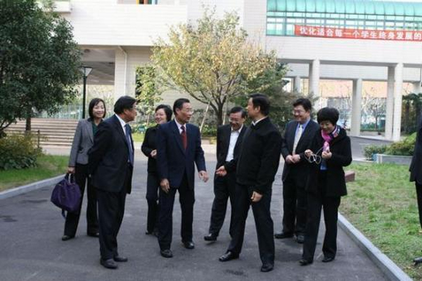 上午9點,南模中學(xué)校長高屹、上海市教委副主任、我校67屆校友李駿修以及副校長鄭芝英、盧久紅等在天平路200號南洋模范初級中學(xué)(原南模中學(xué))校門口迎接我校校友李源潮及夫人高建進。剛過9點,李源潮部長就和夫人的車就來到了校門口,并與李駿修主任和高屹校長等緊緊握手。在南模中學(xué)領(lǐng)導(dǎo)班子成員的陪同下,李部長和夫人下車后首先興致勃勃地參觀了校園,與校友李駿修仔細(xì)研讀了趙憲初老校長銅像的銘文并與李駿修副主任、高屹校長等在趙校長銅像前合影留念。在參觀校園的途中,南模中學(xué)老校長、當(dāng)時的物理老師張茂昌趕到了校園,與李部長相會于母校。師生、校友共同回憶起當(dāng)年的校園生活,仿佛恍若昨日。隨后,高屹校長等陪同李部長等校友一行回到了敬信樓底樓會議室。在敬信樓底樓會議室,李部長欣然為母校題詞:“發(fā)現(xiàn)世界,照亮人生”。隨后,李部長在回顧自己中學(xué)生活后指出:學(xué)校教育要尊重學(xué)生的創(chuàng)造精神,要保護學(xué)生的積極性,要激勵學(xué)生的榮譽心,他以自己在南模讀書時曾經(jīng)有一篇作文在紅樓展出的例子來說明保護孩子的榮譽心是多么的重要;教師要真心熱愛學(xué)生,李部長回憶自己在讀初中的時候跳山羊沒有跳過,當(dāng)時體育老師就個別留他下來一遍又一遍地教他,這才是真正地關(guān)愛學(xué)生。李部長的講話對在場的每一位教師都有深刻的教育意義,同時也是對我們?nèi)w教師提出了希望和要求。賓客在輕松愉快的交談中結(jié)束了對母校的回訪。最后,李部長和夫人與學(xué)校陪同的行政一起在“青鋒石“前合影留念。
