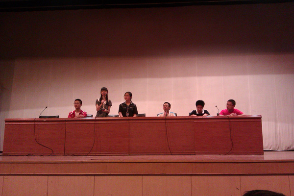 2012屆的優(yōu)秀畢業(yè)生杜宛忻宜、王子元、楊俊等六位同學(xué)與高一新生分享他們高中時(shí)期的學(xué)習(xí)經(jīng)驗(yàn)、做學(xué)生干部的心得、參加社團(tuán)活動(dòng)的收獲以及做一名附中學(xué)生的幸福感。他們言語幽默、輕松,一一解答同學(xué)們的疑惑。各位優(yōu)秀學(xué)哥學(xué)姐以鮮活的經(jīng)驗(yàn)、科學(xué)的方法、昂揚(yáng)的斗志感染著大家,讓同學(xué)們不時(shí)報(bào)以熱烈掌聲。