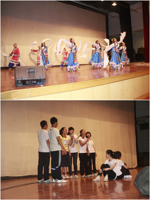 在本次表演中,同學(xué)們用歡快的節(jié)奏,投入地表演,為我們辛勤的老師和教官們獻(xiàn)上了他們美麗的歌聲和用心編制的優(yōu)美舞蹈、話劇。此次匯演體現(xiàn)了附中的和諧氣氛與同學(xué)們面對(duì)新學(xué)期的無限朝氣。