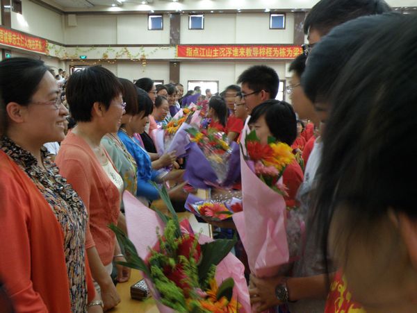 最后,畢業(yè)生代表向全體任課教師敬獻鮮花將典禮推向了高潮,一束束鮮花代表了1000多名畢業(yè)生一顆顆感恩的心。最后,畢業(yè)生代表向母校敬獻了紀念品。