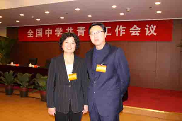 學(xué)校建有“101團(tuán)”的淄博十中團(tuán)委書記與郭涵校長親切合影