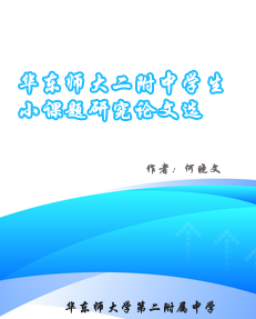 也許,在專(zhuān)家和學(xué)者的眼里,這些論文還不能算作真正意義上的科學(xué)論文,但是作者仍然為小作者發(fā)現(xiàn)問(wèn)題的銳氣、提出問(wèn)題的勇氣、分析問(wèn)題的才氣和解決問(wèn)題的靈氣而驕傲。作者衷心地希望:二附中的學(xué)生從這一個(gè)課題研究、這一篇論文撰寫(xiě)起步,持續(xù)不斷地做課題、寫(xiě)論文,從研究性學(xué)習(xí)進(jìn)入研究性工作,從小小科學(xué)家成長(zhǎng)為杰出科學(xué)家。作者期待著…
