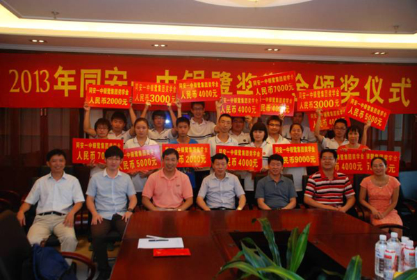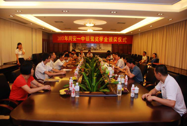 8月15日下午,在廈門(mén)銀鷺集團(tuán)新圩生產(chǎn)基地舉行同安一中2013年度銀鷺獎(jiǎng)學(xué)金頒發(fā)儀式。本次獲獎(jiǎng)學(xué)生有我校2013屆高考前10名(理科前7名,文科前3名)的優(yōu)秀生和2013學(xué)年學(xué)科奧賽和青少年創(chuàng)新大賽獲得福建省一等獎(jiǎng)以上的選手共計(jì)21人次,獎(jiǎng)金金額共計(jì)10萬(wàn)元。