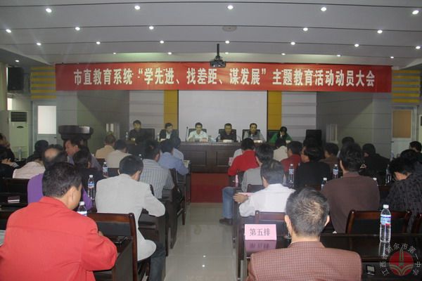 2010年10月11日下午,市教育局召開在市直教育系統(tǒng)深入開展“學(xué)先進(jìn)、找差距、謀發(fā)展”主題教育活動(dòng)員大會(huì),我校和長(zhǎng)青小學(xué)、城北幼兒園代表市直中學(xué)、小學(xué)、幼兒做典型發(fā)言,校長(zhǎng)黃余平代表學(xué)校做了精彩發(fā)言。黃校長(zhǎng)從抓好“學(xué)”“找”“謀”三個(gè)字,談?wù)劵顒?dòng)的打算和做法。