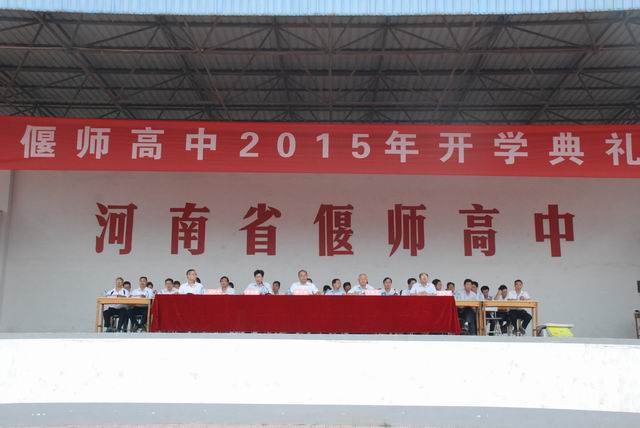 2015年9月9日上午8時(shí),偃師高中2015學(xué)年開(kāi)學(xué)典禮在南校區(qū)操場(chǎng)隆重舉行。偃師高中校長(zhǎng)姬安樂(lè),副校長(zhǎng)王鐵漢、李喜芳、王育強(qiáng)、高紹輝等領(lǐng)導(dǎo)出席大會(huì)。大會(huì)由副校長(zhǎng)李喜芳主持。學(xué)校各處室領(lǐng)導(dǎo)、年級(jí)領(lǐng)導(dǎo)及各教研室主任在主席臺(tái)就坐。