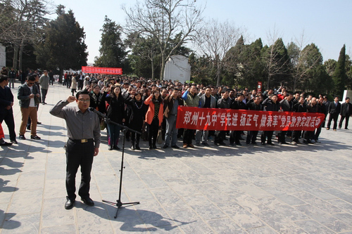 為了認(rèn)真學(xué)習(xí)落實(shí)習(xí)近平總書(shū)記在蘭考縣調(diào)研時(shí)重要講話精神,重溫焦裕祿同志的感人事跡,學(xué)習(xí)焦裕祿同志密切聯(lián)系群眾的優(yōu)良作風(fēng)和艱苦奮斗的政治本色,2014年3月22日,鄭州19中全體黨員在陳紹營(yíng)書(shū)記的帶領(lǐng)下,來(lái)到蘭考縣焦裕祿紀(jì)念園參觀學(xué)習(xí)。