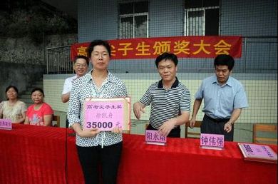 這次頒獎大會由科研處張劍松主任主持。張主任用沸騰的激情和具有超強(qiáng)感染力的語言,點燃全體師生和各位嘉賓的熱情火把,營造一片熱鬧喜慶的氛圍。他首先真誠熱烈地歡迎陽永煊局長和優(yōu)秀考生家長們的到來,頓時遼闊的梧高校園響起震耳的掌聲;接著,張劍松主任簡單回顧梧州高中2011年高考的輝煌成績,最后邀請陽永煊局長、黎鉅鋒校長和鐘偉強(qiáng)書記給梧高學(xué)生徐凱舟、張國林、黃仲賢和賓棟的四位家長,以及梧高2011年語文狀元謝嘉皓頒獎。其中,被北京大學(xué)錄取的徐凱舟、賓棟和黃仲賢同學(xué)分別獲得3.5萬元、2.5萬元、2萬元的獎勵,被清華大學(xué)錄取張國林同學(xué)獲得2萬元獎勵,廣西語文科狀元謝嘉皓獲得5000元的獎勵。