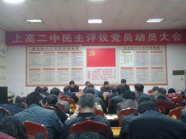 11月29日晚上,上高二中在行政樓三樓會(huì)議室召開(kāi)全體黨員民主評(píng)議大會(huì)。來(lái)自學(xué)校八個(gè)支部共計(jì)一百多名黨員參加了民主評(píng)議大會(huì),大會(huì)由學(xué)校黨總支書(shū)記劉功騷同志主持。首先學(xué)校黨總支副書(shū)記熊繼文同志宣讀了上高縣委組織部《關(guān)于在全縣機(jī)關(guān)(事業(yè))、社區(qū)、企業(yè)黨組織中開(kāi)展民主評(píng)議黨員處置不合格黨員工作的實(shí)施方案》。然后李群賢副書(shū)記與大家一起學(xué)習(xí)了《中共十八屆三中全會(huì)關(guān)于全面深化改革若干重大問(wèn)題的決定》,著重學(xué)習(xí)了其中關(guān)于教育的內(nèi)容。最后,學(xué)校校長(zhǎng)李靈輝同志宣讀了中共宜春市紀(jì)委、宜春市監(jiān)察局《關(guān)于幾起違反中央八項(xiàng)規(guī)定及市“六條禁令”典型問(wèn)題的通報(bào)》的部分內(nèi)容,李校長(zhǎng)借發(fā)生在教師行業(yè)的事例警示學(xué)校全體黨員要以身作則,時(shí)刻以共產(chǎn)黨員的身份嚴(yán)格要求自己,嚴(yán)守中央八項(xiàng)規(guī)定及市“六條禁令”,以實(shí)際行動(dòng)維護(hù)學(xué)校的團(tuán)結(jié),促進(jìn)學(xué)校的可持續(xù)發(fā)展。