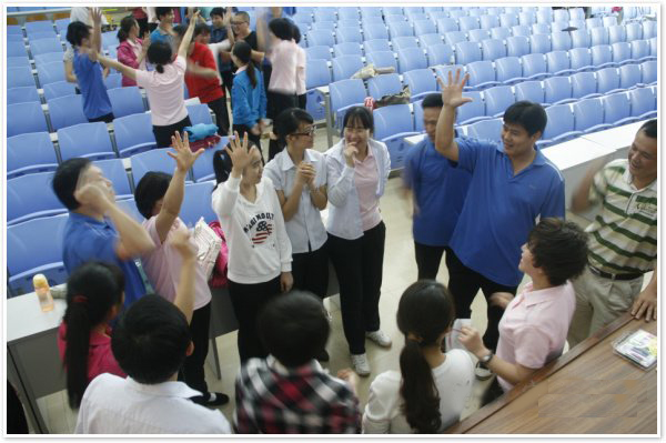 2012年3月17日,在林茵茵校長、梁琳書記的精心組織下,邀請(qǐng)了曹華宗老師在我校初中部進(jìn)行教師團(tuán)隊(duì)拓展活動(dòng)。全校教職員工熱情參與、樂在其中。為期一天的活動(dòng),全體教職員工“累并快樂著”,不僅增進(jìn)了教師之間的感情交流,增強(qiáng)了學(xué)校團(tuán)隊(duì)的凝聚力,更加證明了“團(tuán)結(jié)就是力量”的至理名言。