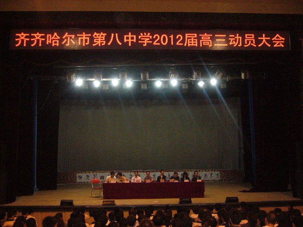 2012屆的高三復習備考早已拉開了序幕,為了進一步統(tǒng)一思想,統(tǒng)一認識,統(tǒng)一目標,統(tǒng)一行動,9月4日我校在齊大文化宮隆重舉行了“走進高三 精彩無限”高三誓師動員大會。高三全體師生和家長參加了本次大會。