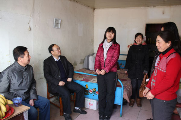 離高考還有70多天,家長的情緒,學生的心理都牽掛在校長心中。乜福玉同學父母從山東來到齊市,靠經(jīng)營一家小水果鋪為生,住著簡陋的租來的寒冷潮濕的平房,生活條件極為艱苦。學校領導關切地囑咐乜福玉晚上學習要注意身體,同時鼓勵她要努力學習考上理想學校,用自己未來的成功改變父母的生活狀況,回報父母養(yǎng)育之恩。當聽到她多次獲得省助學基金和北大倉獎學金時,學校領導還向家長介紹了大學生生源地貸款的相關政策,詳細解讀了國家、省市具體助學措施。