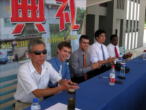 今天,休中的四位外籍教師應(yīng)邀參加了典禮,并做了精彩發(fā)言。盡管漢語(yǔ)說(shuō)得不是十分流利,卻深情的道出了他們對(duì)休中的熱愛(ài)之情,道出了他們對(duì)學(xué)生的喜愛(ài)之情,道出了他們對(duì)教學(xué)工作的執(zhí)著。膚色不分黑白黃,休中亦是我故鄉(xiāng);朋友一生一起走,千困萬(wàn)難一起扛。四位外教現(xiàn)場(chǎng)合唱《朋友》,將開學(xué)典禮推向了高潮。